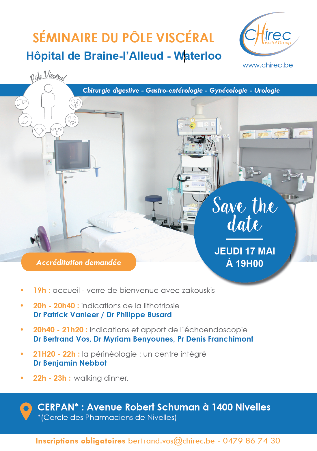 Le Pôle viscéral de l’hôpital de Braine-l’Alleud – Waterloo donne rendez-vous aux généralistes ce jeudi 17 mai pour une soirée accréditée… et plus si affinités.